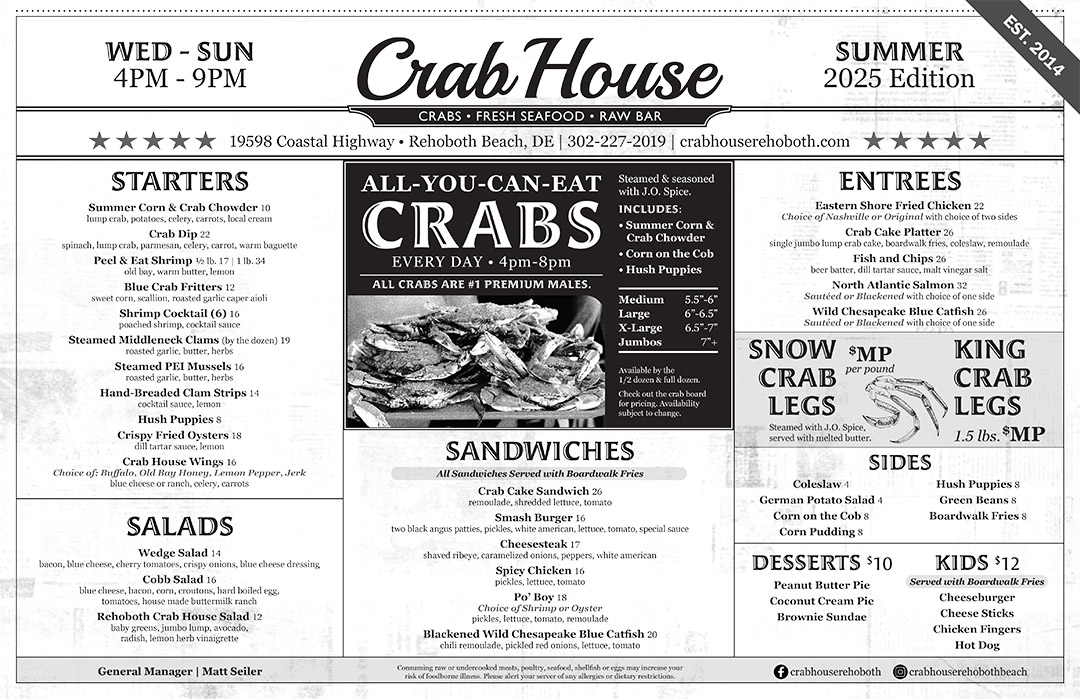 Dine In Menu